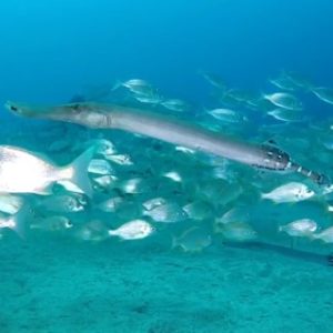 La primera, recorre el perfil derecho del acantilado, llegando a los 16 metros de profundidad. Bancos de roncadores, besuguitos, sardinas, barracudas,….
